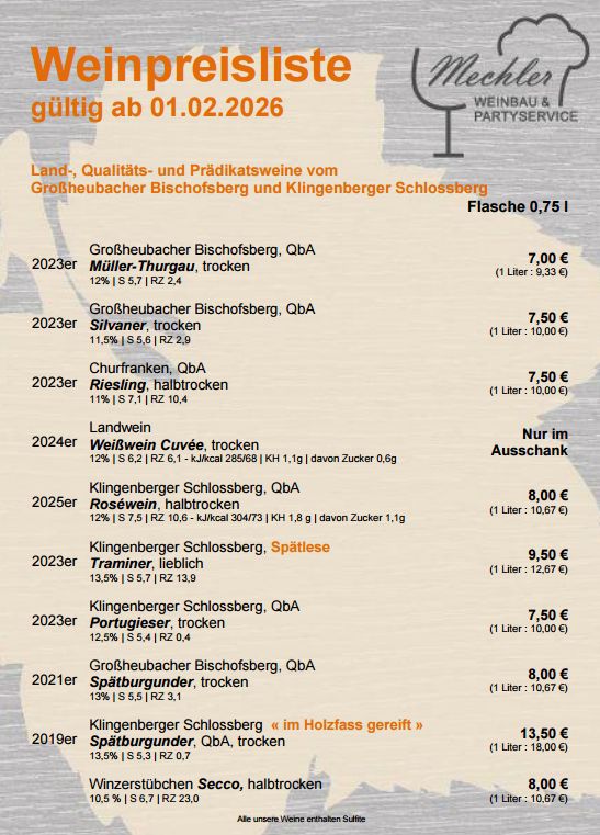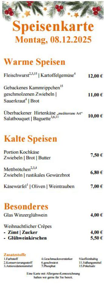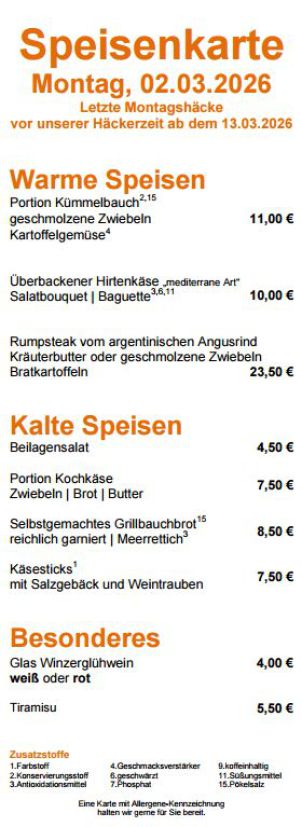 Häcketermine / Speisekarte